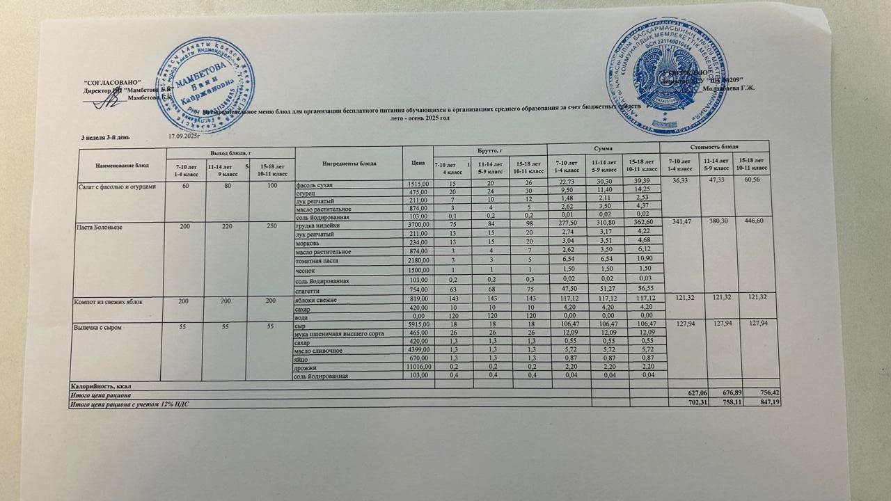 Меню 17.09.2025г. » «№209 Мектеп-гимназия»