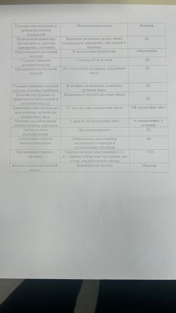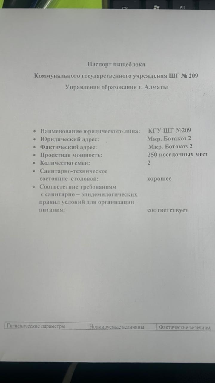 Паспорт школьного пищеблока 2025г. » «№209 Мектеп-гимназия»