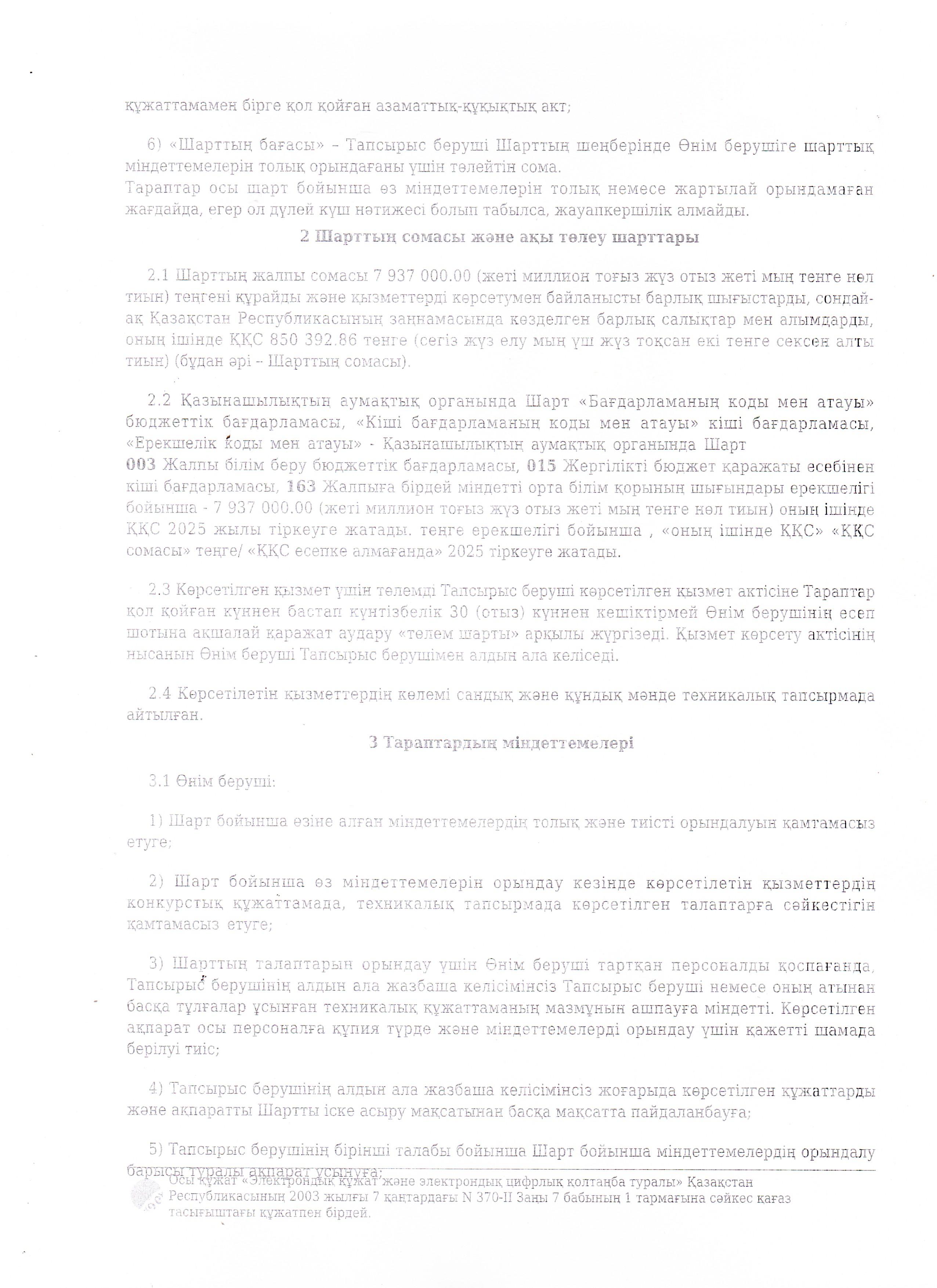 Тамақтану шарты - 2025ж.